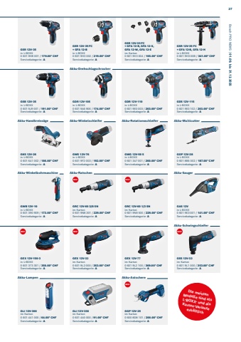 GDR 12V-105in L-BOXX0%u2005601%u20059A6%u2005906 / 174.00* CHFServicekategorie: AGSR 12V-35in L-BOXX0%u2005601%u20059H8%u2005001 / 179.00* CHFServicekategorie: AGWG 12V-50 Sin L-BOXX0%u2005601%u20053A7%u2005001 / 260.00* CHFServicekategorie: AGAS 12Vin L-BOXX0%u2005601%u20059E3%u2005001 / 141.00* CHFServicekategorie: AGEX 12V-150-3in L-BOXX0%u2005601%u2005373%u2005301 / 350.00* CHFServicekategorie: AGLI 12V-330im Karton 0%u2005601%u20054A0%u2005000 / 91.00* CHF Servicekategorie: AGWB 12V-10in L-BOXX0%u2005601%u2005390%u2005909 / 173.00* CHFServicekategorie: AGEX 12V-32im Karton 0%u2005601%u20059L2%u2005000 / 353.00* CHF Servicekategorie: AGRC 12V-60 3/8 SNim Karton 0%u2005601%u20059N8%u2005301 / 229.00* CHF Servicekategorie: AGEX 12V-77im Karton 0%u2005601%u20059L2%u2005100 / 369.00* CHF Servicekategorie: AGRC 12V-60 1/2 SNim Karton 0%u2005601%u20059N8%u2005500 / 229.00* CHF Servicekategorie: AGSS 12V-32im Karton 0%u2005601%u20059L1%u2005000 / 353.00* CHF Servicekategorie: AGLI 12V-300 im Karton 0%u2005601%u20054A1%u2005000 / 64.00* CHF Servicekategorie: AGDR 12V-110in L-BOXX0%u2005601%u20059E0%u2005003 / 203.00* CHFServicekategorie: AGSR 12V-35 FC + GFA 12-Bin L-BOXX0%u2005601%u20059H3%u2005002 / 219.00* CHFServicekategorie: AGOP 12V-28in L-BOXX0%u2005601%u20058B5%u2005002 / 187.00* CHFServicekategorie: AGDS 12V-115in L-BOXX0%u2005601%u20059E0%u2005102 / 203.00* CHFServicekategorie: AGSR 12V-35 FC%u2009+ GFA 12-B, GFA 12-X, GFA 12-W, GFA 12-Eim Karton 0%u2005601%u20059H3%u2005004 / 165.00* CHF Servicekategorie: AGKS 12V-26in L-BOXX0%u2005601%u20056A1%u2005002 / 186.00* CHFServicekategorie: AGSB 12V-35in L-BOXX0%u2005601%u20059J9%u2005001 / 191.00* CHFServicekategorie: AGSR 12V-35 FC + GFA 12-B, GFA 12-Hin L-BOXX0%u2005601%u20059H3%u200500B / 341.00* CHFServicekategorie: AGWS 12V-76in L-BOXX0%u2005601%u20059F2%u2005003 / 192.00* CHFServicekategorie: AGGP 12V-25 im Karton 0%u2005600%u20058D8%u2005101 / 200.00* CHF Servicekategorie: AAkku-WinkelschleiferAkku-SchwingschleiferAkku-Rotationsschleifer Akku-MulticutterAkku-DrehschlagschrauberAkku-LampenAkku-Winkelbohrmaschine Akku-Ratschen Akku-SaugerAkku-Handkreiss%u00e4geAkku-AstschereDie meistenModelle sind alsL-BOXX- und als Karton-Varianteerh%u00e4ltlichNEU! NEU!NEU! NEU! NEU!NEU!27Bosch PRO NEWS | 01.09. bis 31.12.2025