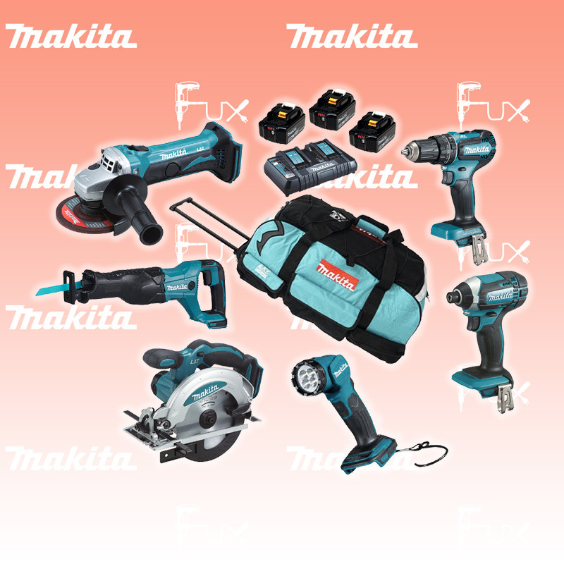 Zu "Akku Maschinen SET 18 Volt" von Makita Makita DLX 6104 TX 2 Set 5 Maschinen + Lampe 18V Bestell- und Artikelnummer: DLX6104TX2 1 x Schlagbohrmaschine 3-Gang DHP458Z 1 x Schlagschrauber DTD152Z 1 x Handkreissäge 66mm DSS610Z 1 x Säbelsäge BL DJR186Z 1 x Winkelschleifer 115mm DGA452Z 1 x Lampe DML815 1 x Doppel-Schnelladegerät DC18RD 3 x Akkus 5.0Ah BL1850B 1 x Transporttasche Technische Daten Akku: 18 V 5.0 Ah ( Li-Ion Akkus ) Zubehör Verbrauchsmaterial Listenpreis CHF 1'365.00 Fuxpreis CHF 1'024.00 inkl. 8.1% MwSt, inkl vRG Versand CHF 15.00 Kein Grauimport! Produkt bestellen 1 Stück 2 Stück 3 Stück 4 Stück 5 Stück 6 Stück 7 Stück 8 Stück 9 Stück 10 Stück Option: Makita BL 1860 B ( Li-lon Akku ) für CHF 95.- statt CHF 124.-Infos Alle Angaben ohne Gewähr und solange Vorrat reicht!Wiederverkäufer werden?Lehrlingsrabatt? Produkt als PDF AKTION 25%