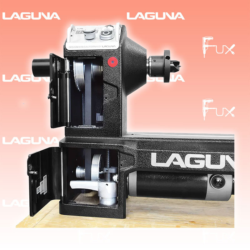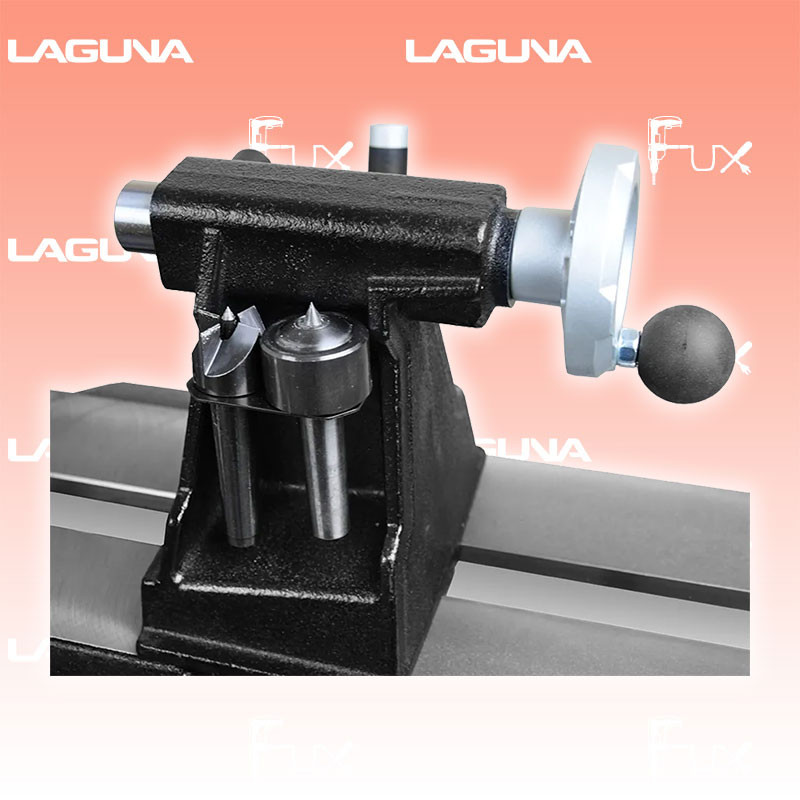 - Die Midi-Drechselbank Laguna 1216 verfügt über ein robustes Design mit einem gusseisernen Spindelstock, einem Reitstock, einem präzise geschliffenen Maschinenbett und einer Werkzeugauflage mit gehärtetem Rand.