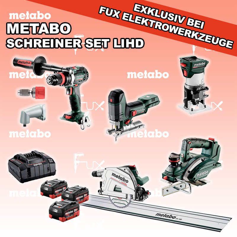 Heute auf dieses Produkt 40% Rabatt! Zu "Schreiner Set" von Metabo FULL Service: 36 Monate zum Nulltarif für Sie! Weitere Infos zum FULL Service Dieses Produkt ist CAS kompatibel! Weitere Infos zu CAS Black Fuxday Aktionen FUX SPECIAL EXKLUSIV BEI FUX Metabo Schreiner Set 4 LiHD Bestell- und Artikelnummer: Schreiner Set 4 LiHD ST 18 LT 130 BL Akku-StichsägeAkkuspannung 18 V Hubzahl 1000-3.500 /min Gewicht ohne Akkupack 1.5 kgInfos BS 18 LTX BL Q I Akku-BohrschrauberAkkuspannung 18 V Drehzahl 0-550 / 0-2000 U/min Drehmoment hart / weich 130 / 65 Nm Gewicht (mit Akkupack) 2.3 kgInfos FMV 18 LTX BL 8 Akku Kantenfräse Akkuspannung 18 V Leerlaufdrehzahl 4.800 - 29.000 /min Spannbohrung der Spannzange 6 / 8 mmInfos KT 18 LTX 66 BL Akku TauchkreissägeAkkuspannung 18 V Schnitt-Tiefe bei 90° 0-66 mm Sägeblatt 165 mm Gewicht 5.3 kgInfos HO 18 LTX 20-82 Akku-Einhand-HobelAkkuspannung 18 V Hobelbreite 82 mm Spanabnahme einstellbar 0-2 mm Gewicht 3.5 KgInfos FS 160 FührungsschieneGesamtlänge 1600 mmInfos 3 x 18 V, 5.5 Ah, LiHD Akkupack18 V 5.5 Ah ( LiHD Akkus ) Infos ASC 145, 12 - 36 V "Air Cooled" LadegerätZum Aufladen aller Li-Power Schiebesitz-Akkupacks (12 V - 36 V). Ladestrom 8.0 AInfos Schnellwechselbithalter »Quick«Schnellwechselbithalter »Quick« Geeignet für alle Metabo "Quick" Maschinen Bits mit 1/4 "Außensechskantantrieb Infos Schnellwechselwinkeladapter »Quick«Metabo "Quick" Maschinen mit Spannzange Ø 43 mm Magnetischer Bithalter mit 1/4 "(6,35 mm) SechskantschaftInfos Standard-Ausrüstung In diesem Set enthalten: ST 18 LT 130 BL Akku-Stichsäge BS 18 LTX BL Q I Akku-Bohrschrauber FMV 18 LTX BL 8 Akku Kantenfräse KT 18 LTX 66 BL Akku Tauchkreissäge HO 18 LTX 20-82 Akku-Einhand-Hobel FS 160 Führungsschiene 3 x 18 V, 5.5 Ah, LiHD Akkupack ASC 145, 12 - 36 V "Air Cooled" Ladegerät Schnellwechselbithalter »Quick« Schnellwechselwinkeladapter »Quick« Zubehör Verbrauchsmaterial Listenpreis CHF 2'521.50 Fuxpreis CHF 1'513.00 inkl. 8.1% MwSt, inkl vRG Versand CHF 40.00 Kein Grauimport! Produkt bestellen 1 Stück 2 Stück 3 Stück 4 Stück 5 Stück 6 Stück 7 Stück 8 Stück 9 Stück 10 Stück Alle Angaben ohne Gewähr und solange Vorrat reicht!Wiederverkäufer werden? Produkt als PDFVideo LiHD 1Video LiHD 2 AKTION 40%