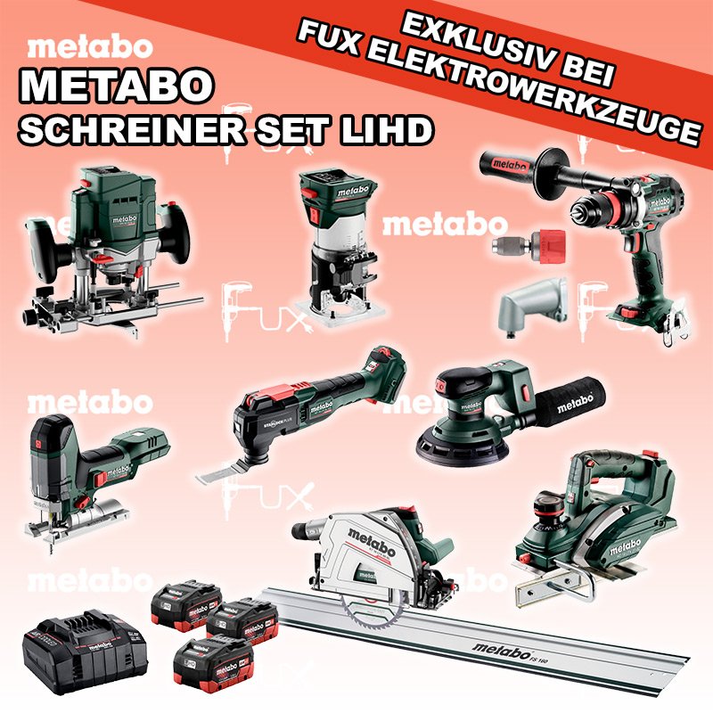 Heute auf dieses Produkt 40% Rabatt! Zu "Schreiner Set" von Metabo FULL Service: 36 Monate zum Nulltarif für Sie! Weitere Infos zum FULL Service Dieses Produkt ist CAS kompatibel! Weitere Infos zu CAS Black Fuxday Aktionen FUX SPECIAL EXKLUSIV BEI FUX Metabo Schreiner Set XXL 1 LiHD Bestell- und Artikelnummer: Schreiner Set XXL1 LiHD ST 18 LT 130 BL Akku-StichsägeAkkuspannung 18 V Hubzahl 1000-3.500 /min Gewicht ohne Akkupack 1.5 kgInfos BS 18 LTX BL Q I Akku-BohrschrauberAkkuspannung 18 V Drehzahl 0-550 / 0-2000 U/min Drehmoment hart / weich 130 / 65 Nm Gewicht (mit Akkupack) 2.3 kgInfos FMV 18 LTX BL 8 Akku Kantenfräse Akkuspannung 18 V Leerlaufdrehzahl 4.800 - 29.000 /min Spannbohrung der Spannzange 6 / 8 mmInfos OFV 18 LTX BL 12 Akku-OberfräseAkkuspannung 18 V Leerlaufdrehzahl 11.000 - 25.000 / min Spannbohrung der Spannzange 6 / 8 / 12 mm Gewicht ohne Akkupack 2.900 gInfos KT 18 LTX 66 BL Akku TauchkreissägeAkkuspannung 18 V Schnitt-Tiefe bei 90° 0-66 mm Sägeblatt 165 mm Gewicht 5.3 kgInfos HO 18 LTX 20-82 Akku-Einhand-HobelAkkuspannung 18 V Hobelbreite 82 mm Spanabnahme einstellbar 0-2 mm Gewicht 3.5 KgInfos MT 18 LTX BL QSL Akku-Multitool Akkuspannung 18 V Schwingzahl bei Leerlauf 8.000 - 20.000 /min Schleifplatte, Maß Eck zu Eck 93 mm Gewicht 1.7 kgInfos SXA 18 LTX 150 BL Exzenterschleifer Akkuspannung 18 V Durchmesser des Stütztellers 150 mm Leerlaufdrehzahl 4000 - 10000 /min Gewicht (mit Akkupack) 1.7 kg Infos FS 160 FührungsschieneGesamtlänge 1600 mmInfos 3 x 18 V, 5.5 Ah, LiHD Akkupack18 V 5.5 Ah ( LiHD Akkus ) Infos ASC 145, 12 - 36 V "Air Cooled" LadegerätZum Aufladen aller Li-Power Schiebesitz-Akkupacks (12 V - 36 V). Ladestrom 8.0 AInfos Schnellwechselbithalter »Quick«Schnellwechselbithalter »Quick« Geeignet für alle Metabo "Quick" Maschinen Bits mit 1/4 "Außensechskantantrieb Infos Schnellwechselwinkeladapter »Quick«Metabo "Quick" Maschinen mit Spannzange Ø 43 mm Magnetischer Bithalter mit 1/4 "(6,35 mm) SechskantschaftInfos Standard-Ausrüstung In diesem Set enthalten: ST 18 LT 130 BL Akku-Stichsäge BS 18 LTX BL Q I Akku-Bohrschrauber FMV 18 LTX BL 8 Akku Kantenfräse OFV 18 LTX BL 12 Akku-Oberfräse KT 18 LTX 66 BL Akku Tauchkreissäge HO 18 LTX 20-82 Akku-Einhand-Hobel MT 18 LTX BL QSL Akku-Multitool SXA 18 LTX 150 BL Exzenterschleifer FS 160 Führungsschiene 3 x 18 V, 5.5 Ah, LiHD Akkupack ASC 145, 12 - 36 V "Air Cooled" Ladegerät Schnellwechselbithalter »Quick« Schnellwechselwinkeladapter »Quick« Zubehör Verbrauchsmaterial Listenpreis CHF 3'628.50 Fuxpreis CHF 2'177.00 inkl. 8.1% MwSt, inkl vRG Versand CHF 40.00 Kein Grauimport! Produkt bestellen 1 Stück 2 Stück 3 Stück 4 Stück 5 Stück 6 Stück 7 Stück 8 Stück 9 Stück 10 Stück Alle Angaben ohne Gewähr und solange Vorrat reicht!Wiederverkäufer werden? Produkt als PDFVideo LiHD 1Video LiHD 2 AKTION 40%