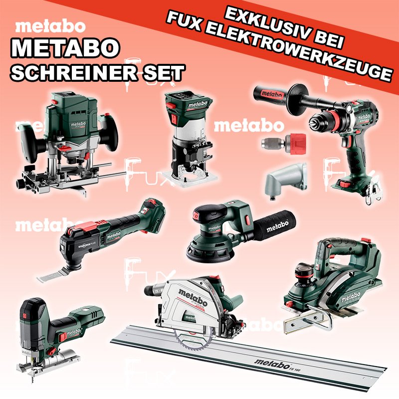 Heute auf dieses Produkt 40% Rabatt! Zu "Schreiner Set" von Metabo FULL Service: 36 Monate zum Nulltarif für Sie! Weitere Infos zum FULL Service Dieses Produkt ist CAS kompatibel! Weitere Infos zu CAS Black Fuxday Aktionen FUX SPECIAL EXKLUSIV BEI FUX Metabo Schreiner Set XXL 2 SOLO Bestell- und Artikelnummer: Schreiner Set XXL 2 SOLO ST 18 LT 130 BL Akku-StichsägeAkkuspannung 18 V Hubzahl 1000-3.500 /min Gewicht ohne Akkupack 1.5 kgInfos BS 18 LTX BL Q I Akku-BohrschrauberAkkuspannung 18 V Drehzahl 0-550 / 0-2000 U/min Drehmoment hart / weich 130 / 65 Nm Gewicht (mit Akkupack) 2.3 kgInfos FMV 18 LTX BL 8 Akku Kantenfräse Akkuspannung 18 V Leerlaufdrehzahl 4.800 - 29.000 /min Spannbohrung der Spannzange 6 / 8 mmInfos OFV 18 LTX BL 12 Akku-OberfräseAkkuspannung 18 V Leerlaufdrehzahl 11.000 - 25.000 / min Spannbohrung der Spannzange 6 / 8 / 12 mm Gewicht ohne Akkupack 2.900 gInfos KT 18 LTX 66 BL Akku TauchkreissägeAkkuspannung 18 V Schnitt-Tiefe bei 90° 0-66 mm Sägeblatt 165 mm Gewicht 5.3 kgInfos HO 18 LTX 20-82 Akku-Einhand-HobelAkkuspannung 18 V Hobelbreite 82 mm Spanabnahme einstellbar 0-2 mm Gewicht 3.5 KgInfos MT 18 LTX BL QSL Akku-Multitool Akkuspannung 18 V Schwingzahl bei Leerlauf 8.000 - 20.000 /min Schleifplatte, Maß Eck zu Eck 93 mm Gewicht 1.7 kgInfos SXA 18 LTX 125 BL Exzenterschleifer Akkuspannung 18 V Durchmesser des Stütztellers 125 mm Leerlaufdrehzahl 4000 - 10000 /min Gewicht (mit Akkupack) 1.7 kg Infos FS 160 FührungsschieneGesamtlänge 1600 mmInfos Schnellwechselbithalter »Quick«Schnellwechselbithalter »Quick« Geeignet für alle Metabo "Quick" Maschinen Bits mit 1/4 "Außensechskantantrieb Infos Schnellwechselwinkeladapter »Quick«Metabo "Quick" Maschinen mit Spannzange Ø 43 mm Magnetischer Bithalter mit 1/4 "(6,35 mm) SechskantschaftInfos OHNE AKKUS UND LADEGERÄT Standard-Ausrüstung In diesem Set enthalten: ST 18 LT 130 BL Akku-Stichsäge BS 18 LTX BL Q I Akku-Bohrschrauber FMV 18 LTX BL 8 Akku Kantenfräse OFV 18 LTX BL 12 Akku-Oberfräse KT 18 LTX 66 BL Akku Tauchkreissäge HO 18 LTX 20-82 Akku-Einhand-Hobel MT 18 LTX BL QSL Akku-Multitool SXA 18 LTX 125 BL Exzenterschleifer FS 160 Führungsschiene Schnellwechselbithalter »Quick« Schnellwechselwinkeladapter »Quick« Zubehör Verbrauchsmaterial Listenpreis CHF 3'126.50 Fuxpreis CHF 1'876.00 inkl. 8.1% MwSt, inkl vRG Versand CHF 40.00 Kein Grauimport! Produkt bestellen Alle Angaben ohne Gewähr und solange Vorrat reicht!Wiederverkäufer werden? Produkt als PDFVideo LiHD 1Video LiHD 2 AKTION 40%