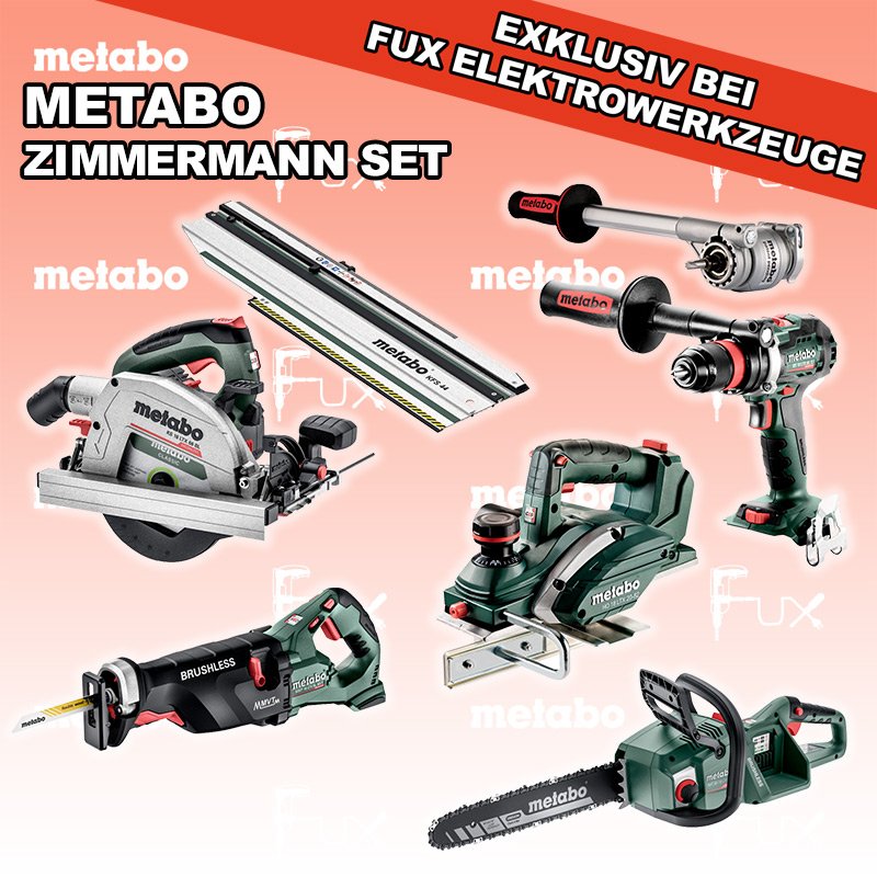 Heute auf dieses Produkt 27% Rabatt! Zu "Zimmermann Set" von Metabo FULL Service: 36 Monate zum Nulltarif für Sie! Weitere Infos zum FULL Service Dieses Produkt ist CAS kompatibel! Weitere Infos zu CAS Black Fuxday Aktionen FUX SPECIAL EXKLUSIV BEI FUX Metabo Zimmermann SET 3 SOLO Bestell- und Artikelnummer: Zimmermann SET 3 SOLO BS 18 LTX BL Q I Akku-BohrschrauberAkkuspannung 18 V Drehzahl 0-550 / 0-2000 U/min Drehmoment hart / weich 130 / 65 Nm Gewicht (mit Akkupack) 2.3 kgInfos MS 36-18 LTX BL 40 Akku KettensägeAkkuspannung 18 V Schnittlänge 36 cm Max. Kettengeschwindigkeit 22 m/s Gewicht mit Akkupack 4,6 kgInfos SSEP 18 LTX BL MVT Akku-SäbelsägeAkkuspannung 18 V Hubzahl bei Leerlauf 0 - 3.000 /min Gewicht (mit Akkupack) 4.6 kgInfos HO 18 LTX 20-82 Akku-Einhand-HobelAkkuspannung 18 V Hobelbreite 82 mm Spanabnahme einstellbar 0-2 mm Gewicht 3.5 KgInfos KS 18 LTX 66 BL Akku HandkreissägeAkkuspannung 18 V Schnitt-Tiefe bei 90° 0-66 mm Sägeblatt 165 mm Gewicht 4.5 kgInfos Drehmomentvorsatz Power X3Drehmomentvorsatz ermöglicht dreifache Leistungssteigerung der Maschine (Drehmoment) für härteste AnwendungenInfos Kappschiene KFS 44Gesamtlänge 834 mm Schnittlänge 440 mmInfos Registriere die in diesem Set vorhandenen Metabo Maschinen auf metabo.ch, und ergattere dir bis zu 5 Gratis Akkus!Zusätzlich offerieren wir zu diesem Set einen Gratis Akku!OHNE AKKUS UND LADEGERÄT Standard-Ausrüstung In diesem Set enthalten: BS 18 LTX BL Q I Akku-Bohrschrauber MS 36-18 LTX BL 40 Akku Kettensäge SSEP 18 LTX BL MVT Akku-Säbelsäge HO 18 LTX 20-82 Akku-Einhand-Hobel KS 18 LTX 66 BL Akku Handkreissäge Drehmomentvorsatz Power X3 Kappschiene KFS 44 Listenpreis CHF 2'218.50 Fuxpreis CHF 1'604.00 inkl. 8.1% MwSt, inkl vRG Versand CHF 25.00 Kein Grauimport! Produkt bestellen 1 Stück 2 Stück 3 Stück 4 Stück 5 Stück 6 Stück 7 Stück 8 Stück 9 Stück 10 Stück Alle Angaben ohne Gewähr und solange Vorrat reicht!Wiederverkäufer werden? Produkt als PDF NEUHEITAKTION 27%