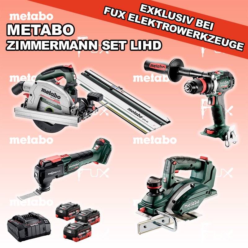 Heute auf dieses Produkt 27% Rabatt! Zu "Zimmermann Set" von Metabo FULL Service: 36 Monate zum Nulltarif für Sie! Weitere Infos zum FULL Service Dieses Produkt ist CAS kompatibel! Weitere Infos zu CAS Black Fuxday Aktionen FUX SPECIAL EXKLUSIV BEI FUX Metabo Zimmermann SET 6 LiHD Bestell- und Artikelnummer: Zimmermann SET 6 LiHD BS 18 LTX BL Q I Akku-BohrschrauberAkkuspannung 18 V Drehzahl 0-550 / 0-2000 U/min Drehmoment hart / weich 130 / 65 Nm Gewicht (mit Akkupack) 2.3 kgInfos MT 18 LTX BL QSL Akku-Multitool Akkuspannung 18 V Schwingzahl bei Leerlauf 8.000 - 20.000 /min Schleifplatte, Maß Eck zu Eck 93 mm Gewicht 1.7 kgInfos HO 18 LTX 20-82 Akku-Einhand-HobelAkkuspannung 18 V Hobelbreite 82 mm Spanabnahme einstellbar 0-2 mm Gewicht 3.5 KgInfos KS 18 LTX 66 BL Akku HandkreissägeAkkuspannung 18 V Schnitt-Tiefe bei 90° 0-66 mm Sägeblatt 165 mm Gewicht 4.5 kgInfos Kappschiene KFS 44Gesamtlänge 834 mm Schnittlänge 440 mmInfos 3 x 18 V, 5.5 Ah, LiHD Akkupack18 V 5.5 Ah ( LiHD Akkus ) Infos ASC 145, 12 - 36 V "Air Cooled" LadegerätZum Aufladen aller Li-Power Schiebesitz-Akkupacks (12 V - 36 V). Ladestrom 8.0 AInfos Registriere die in diesem Set vorhandenen Metabo Maschinen auf metabo.ch, und ergattere dir bis zu 5 Gratis Akkus!Zusätzlich offerieren wir zu diesem Set einen Gratis Akku! Standard-Ausrüstung In diesem Set enthalten: BS 18 LTX BL Q I Akku-Bohrschrauber MT 18 LTX BL QSL Akku-Multitool HO 18 LTX 20-82 Akku-Einhand-Hobel KS 18 LTX 66 BL Akku Handkreissäge Kappschiene KFS 44 3 x 18 V, 5.5 Ah, LiHD Akkupack ASC 145, 12 - 36 V "Air Cooled" Ladegerät Listenpreis CHF 2'036.50 Fuxpreis CHF 1'472.00 inkl. 8.1% MwSt, inkl vRG Versand CHF 25.00 Kein Grauimport! Produkt bestellen 1 Stück 2 Stück 3 Stück 4 Stück 5 Stück 6 Stück 7 Stück 8 Stück 9 Stück 10 Stück Alle Angaben ohne Gewähr und solange Vorrat reicht!Wiederverkäufer werden? Produkt als PDF NEUHEITAKTION 27%
