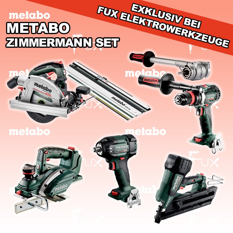 Heute auf dieses Produkt 27% Rabatt! Zu "Zimmermann Set" von Metabo FULL Service: 36 Monate zum Nulltarif für Sie! Weitere Infos zum FULL Service Dieses Produkt ist CAS kompatibel! Weitere Infos zu CAS Black Fuxday Aktionen FUX SPECIAL EXKLUSIV BEI FUX Metabo Zimmermann SET 9 SOLO Bestell- und Artikelnummer: Zimmermann SET 9 SOLO BS 18 LTX BL Q I Akku-BohrschrauberAkkuspannung 18 V Drehzahl 0-550 / 0-2000 U/min Drehmoment hart / weich 130 / 65 Nm Gewicht (mit Akkupack) 2.3 kgInfos SSW 18 LTX 550 BL Akku-SchlagschrauberAkkuspannung 18 V Anziehdrehmoment 550 Nm Werkzeugaufnahme 1/2" Gewicht ohne Akkupack 1,4 kgInfos NFR 18 LTX 90 BL Akku NaglerAkkuspannung 18 V Nagelstreifen Winkel 30 - 34 ° Nagellänge 50 - 90 mm Nageldurchmesser 2,9 - 3,3 mm Gewicht ohne Akkupack 4,1 kgInfos HO 18 LTX 20-82 Akku-Einhand-HobelAkkuspannung 18 V Hobelbreite 82 mm Spanabnahme einstellbar 0-2 mm Gewicht 3.5 KgInfos KS 18 LTX 66 BL Akku HandkreissägeAkkuspannung 18 V Schnitt-Tiefe bei 90° 0-66 mm Sägeblatt 165 mm Gewicht 4.5 kgInfos Drehmomentvorsatz Power X3Drehmomentvorsatz ermöglicht dreifache Leistungssteigerung der Maschine (Drehmoment) für härteste AnwendungenInfos Kappschiene KFS 44Gesamtlänge 834 mm Schnittlänge 440 mmInfos Registriere die in diesem Set vorhandenen Metabo Maschinen auf metabo.ch, und ergattere dir bis zu 5 Gratis Akkus!Zusätzlich offerieren wir zu diesem Set einen Gratis Akku!OHNE AKKUS UND LADEGERÄT Standard-Ausrüstung In diesem Set enthalten: BS 18 LTX BL Q I Akku-Bohrschrauber SSW 18 LTX 550 BL Akku-Schlagschrauber NFR 18 LTX 90 BL Akku Nagler HO 18 LTX 20-82 Akku-Einhand-Hobel KS 18 LTX 66 BL Akku Handkreissäge Drehmomentvorsatz Power X3 Kappschiene KFS 44 Listenpreis CHF 2'398.50 Fuxpreis CHF 1'734.00 inkl. 8.1% MwSt, inkl vRG Versand CHF 25.00 Kein Grauimport! Produkt bestellen 1 Stück 2 Stück 3 Stück 4 Stück 5 Stück 6 Stück 7 Stück 8 Stück 9 Stück 10 Stück Alle Angaben ohne Gewähr und solange Vorrat reicht!Wiederverkäufer werden? Produkt als PDF NEUHEITAKTION 27%