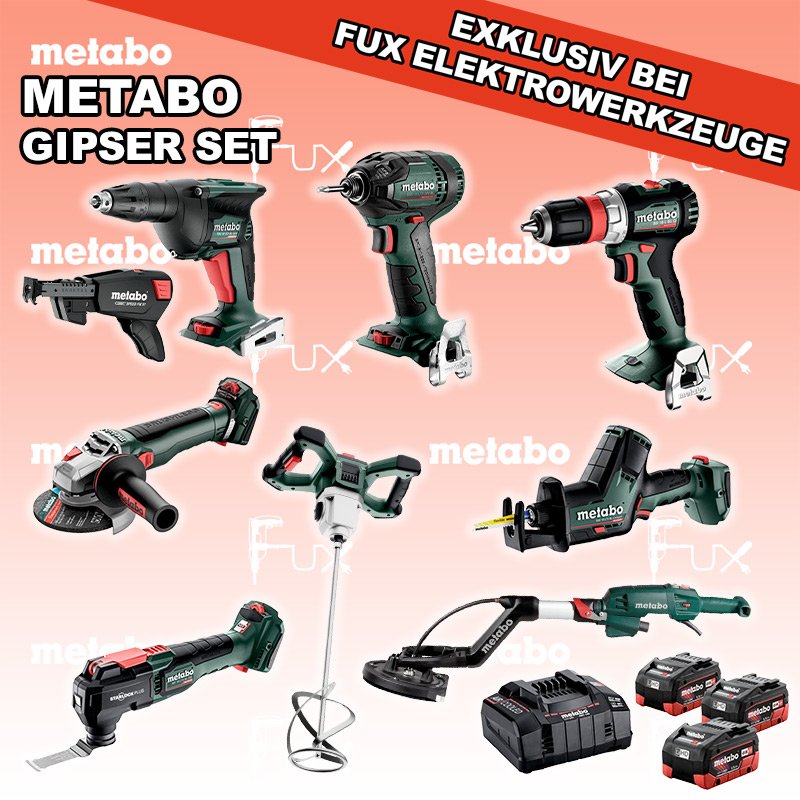 Das Ladenlokal bleibt vom 23. Februar 2026 bis am 28. Februar 2026 geschlossen. Bestellungen und Lieferungen von Neugeräten werden trotz Ferienabwesenheit in gewohnter Fux-Manier entgegengenommen und ausgeliefert. Zu "Gipser Set" von Metabo FUX SPECIAL EXKLUSIV BEI FUX Metabo Gipser Set 9 Bestell- und Artikelnummer: Gipser Set 9 FULL Service: 36 Monate zum Nulltarif für Sie! Weitere Infos zum FULL Service BS 18 L BL Q Akku-BohrschrauberAkkuspannung 18 V Drehzahl 0 - 500 / 0 - 1700 /min Drehmoment hart / weich 60 / 28 Nm Gewicht (mit Akkupack) 1.3 kgInfos TBS 18 LTX BL 5000 Akku-TrockenbauschrauberAkkuspannung 18 V Leerlaufdrehzahl 0 - 5.000 /min Max. Drehmoment weich 6 Nm Gewicht mit Akkupack 1,3 kgInfos RW 18 LTX BL 140-2 Akku-RührwerkAkkuspannung 18 V Max. Rührkorb-Durchmesser 140 mm Max. empfohlene Mischmenge 50 l Werkzeugaufnahme Innengewinde M 14 Infos SSD 18 LTX 200 BL Akku-Schlagschrauber Akkuspannung 18 V Anziehdrehmoment 200 Nm Werkzeugaufnahme 1/4" Gewicht 1.3 kgInfos WVB 18 LT BL 11-125 Quick Akku-WinkelschleiferAkkuspannung 18 V Drehzahl 2.800 - 10.000 / min Ø 125 mm Scheiben Gewicht (mit Akkupack) 2.5 kgInfos SSE 18 LTX BL Compact Akku-SäbelsägeAkkuspannung 18 V Hubzahl 0-3000 min-1 Hublängen 16 mm Gewicht (mit Akkupack) 1.8 kgInfos MT 18 LTX BL QSL Akku-Multitool Akkuspannung 18 V Schwingzahl bei Leerlauf 8.000 - 20.000 /min Schleifplatte, Maß Eck zu Eck 93 mm Gewicht 1.7 kgInfos LSV 5-225 Comfort LanghalsschleiferLeistungsaufnahme 500 Watt Durchmesser Schleifteller 225 mm Leerlaufdrehzahl 1000 - 1650 min-1 Gewicht 4.5 kgInfos 3 x 18 V, 5.5 Ah, LiHD Akkupack18 V 5.5 Ah ( LiHD Akkus ) Infos ASC 145, 12 - 36 V "Air Cooled" LadegerätZum Aufladen aller Li-Power Schiebesitz-Akkupacks (12 V - 36 V). Ladestrom 8.0 AInfos Schrauber-Magazin Speed Fix 57Robustes Schrauber-Magazin geeignet für TBS 18 LTX 5000 und HBS 18 LTX 3000Infos Registriere die in diesem Set vorhandenen Metabo Maschinen auf metabo.ch, und ergattere dir bis zu 5 Gratis Akkus!Zusätzlich offerieren wir zu diesem Set einen Gratis Akku! Standard-Ausrüstung In diesem Set enthalten: BS 18 L BL Q Akku-Bohrschrauber TBS 18 LTX BL 5000 Akku-Trockenbauschrauber RW 18 LTX BL 140-2 Akku-Rührwerk SSD 18 LTX 200 BL Akku-Schlagschrauber WVB 18 LT BL 11-125 Quick Akku-Winkelschleifer SSE 18 LTX BL Compact Akku-Säbelsäge MT 18 LTX BL QSL Akku-Multitool LSV 5-225 Comfort Langhalsschleifer 3 x 18 V, 5.5 Ah, LiHD Akkupack ASC 145, 12 - 36 V "Air Cooled" Ladegerät Schrauber-Magazin Speed Fix 57 Listenpreis CHF 3'585.50 Fuxpreis CHF 2'441.00 inklusive 8.1% MwSt Frankolieferung Kein Grauimport! Produkt bestellen 1 Stück 2 Stück 3 Stück 4 Stück 5 Stück 6 Stück 7 Stück 8 Stück 9 Stück 10 Stück Alle Angaben ohne Gewähr und solange Vorrat reicht!Wiederverkäufer werden? Produkt als PDF NEUHEITAKTION 31%